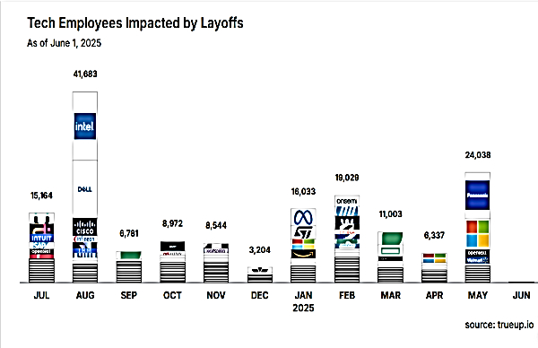 - The largest tech player in the world, Microsoft, joined the bandwagon in May, with a 3% reduction in its workforce, which translates into 6,000-7,000 employees. This is the Bill Gates-backed company's second layoff in 2025, also the highest since the mass firing of 10,000 employees in 2023. The strengthening of AI is the main reason, while Microsoft also revealed that they are making organizational changes for long-term success.