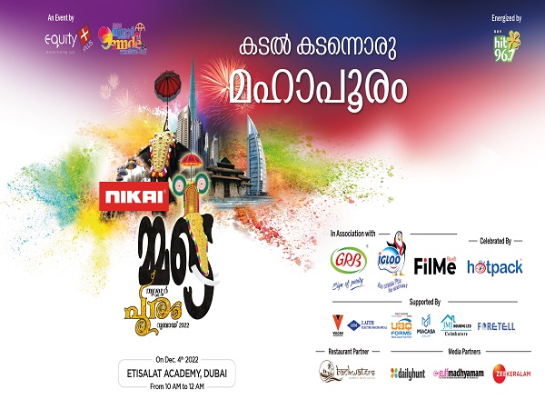 Organized by Equity Plus Advertising and Mmde Thrissur UAE, the 'Mmde Thrissur Pooram Dubai 2022' mega event will be conducted at the Dubai Etisalat Academy on Sunday, 4th December 2022. The event will level up on the electrifying ambiance of the previous year's Dubai Thrissur Pooram and reflect the heightened enthusiasm of the original Thrissur Pooram festival of Kerala.
