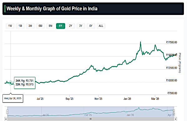 Gold rates in India have recovered their early losses and are currently up by nearly 2% in April 2026 so far. This comes after 24 carat, 22 carat and 18 carat gold prices dropped by nearly 14% in March 2026 due to the escalation in US-Israel-Iran war. But despite the volatility that gold has faced in the first quarter of 2026, its yearly performance is still strong. In fact, from last Akshaya Tritiya, gold has given robust returns.
