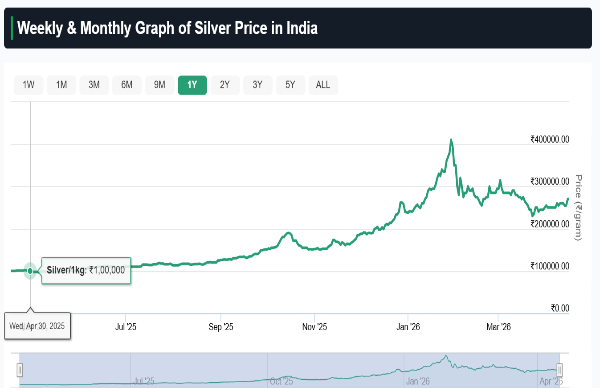 On April 30, 2025, during the last Akshaya Tritiya, silver price stood at Rs 1 lakh mark. Currently, silver is at Rs 2.70 lakh mark. Hence, from last Akha Teej to the upcoming Akha Teej 2026, silver has given a breathtaking 170% returns.
